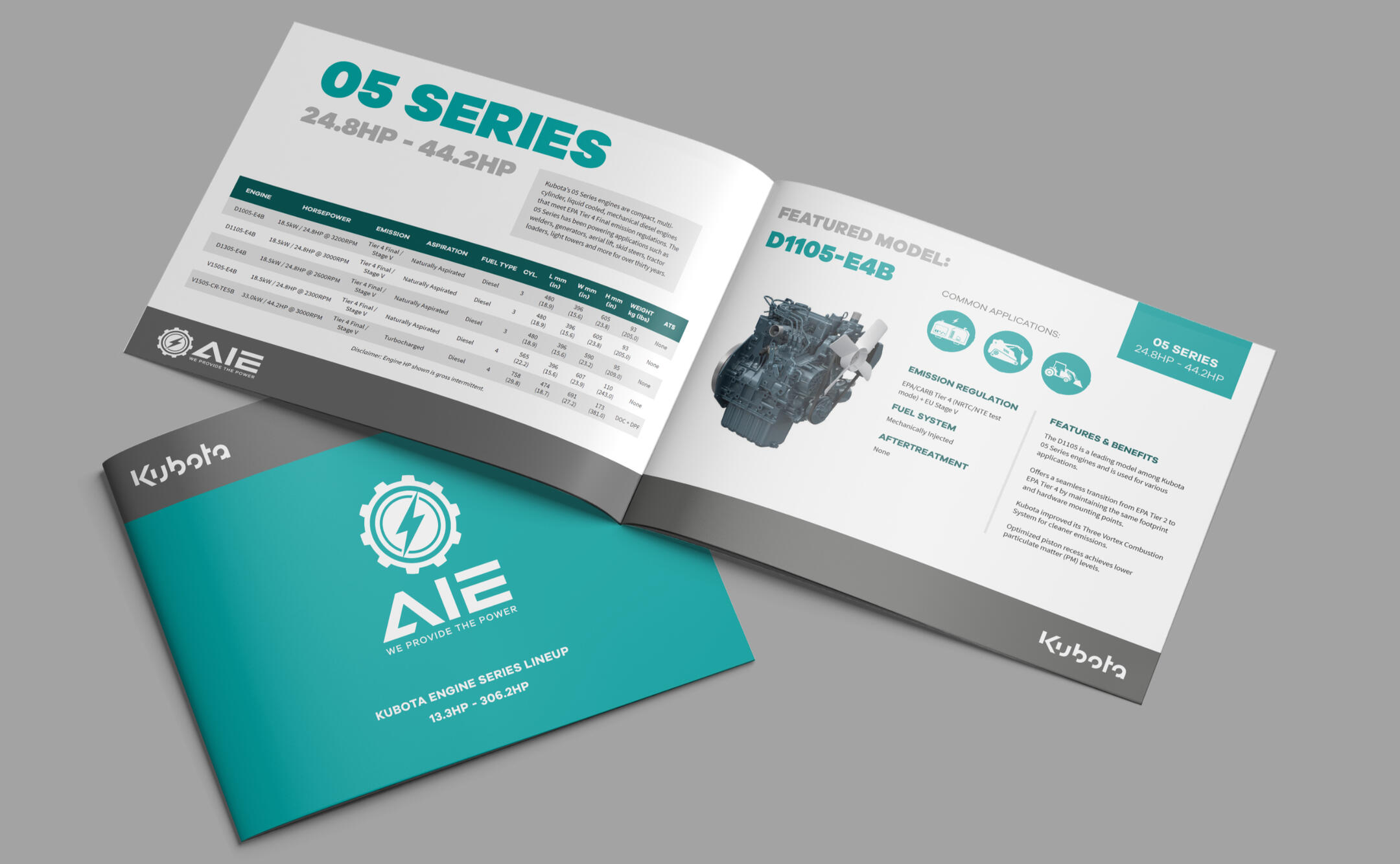 AIE is an industrial engine distributor that engineers and builds their own custom power products. I have worked with them over the majority of my tenure as a professional designer, designing logos and developing their brand identity for various power product lineups.These cohesive "sister" brands live under the umbrella of AIE's brand identity pyramid. Inspired by their parent brand, they communicate futurism and AIE's mission to push modern power product solutions into the future.