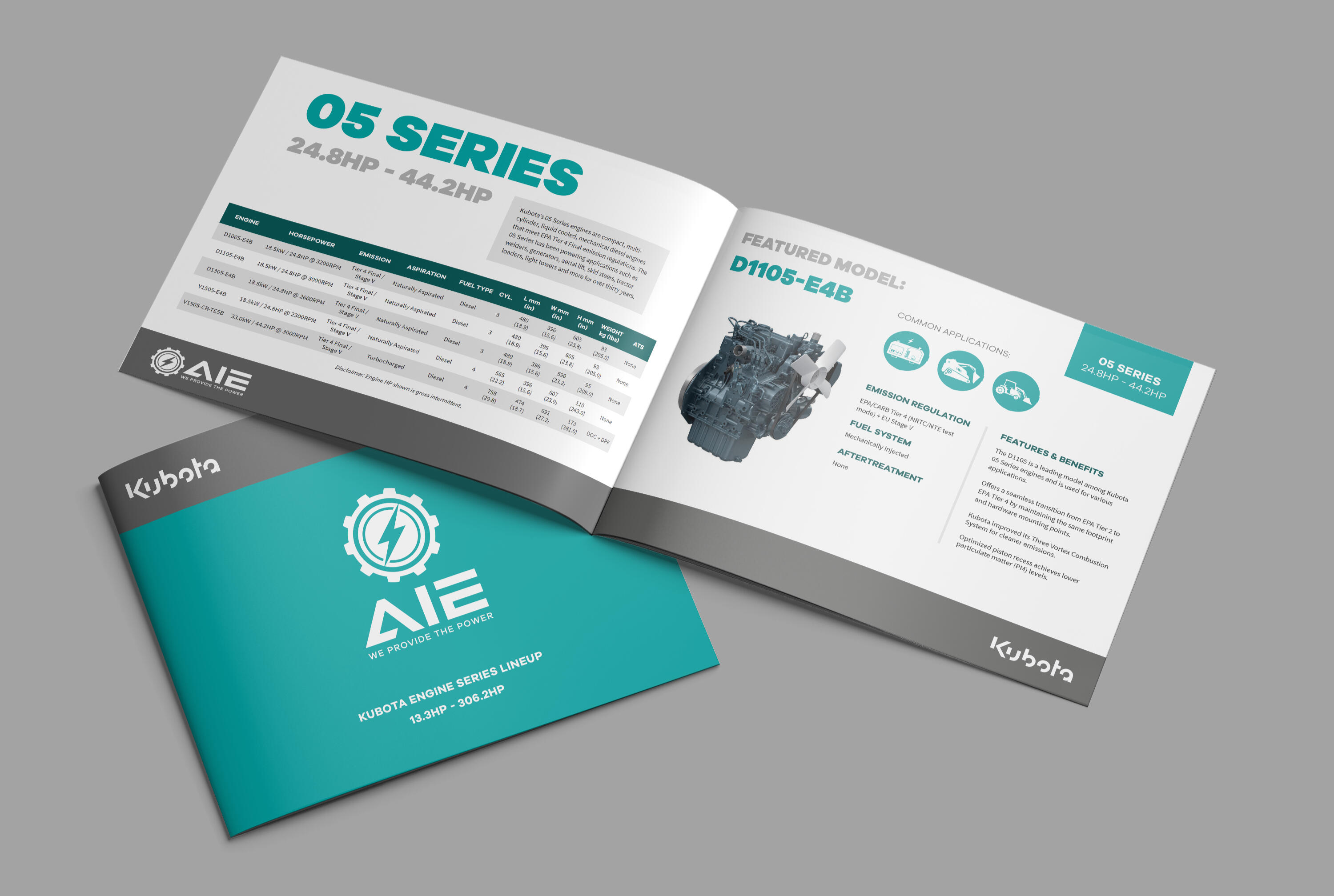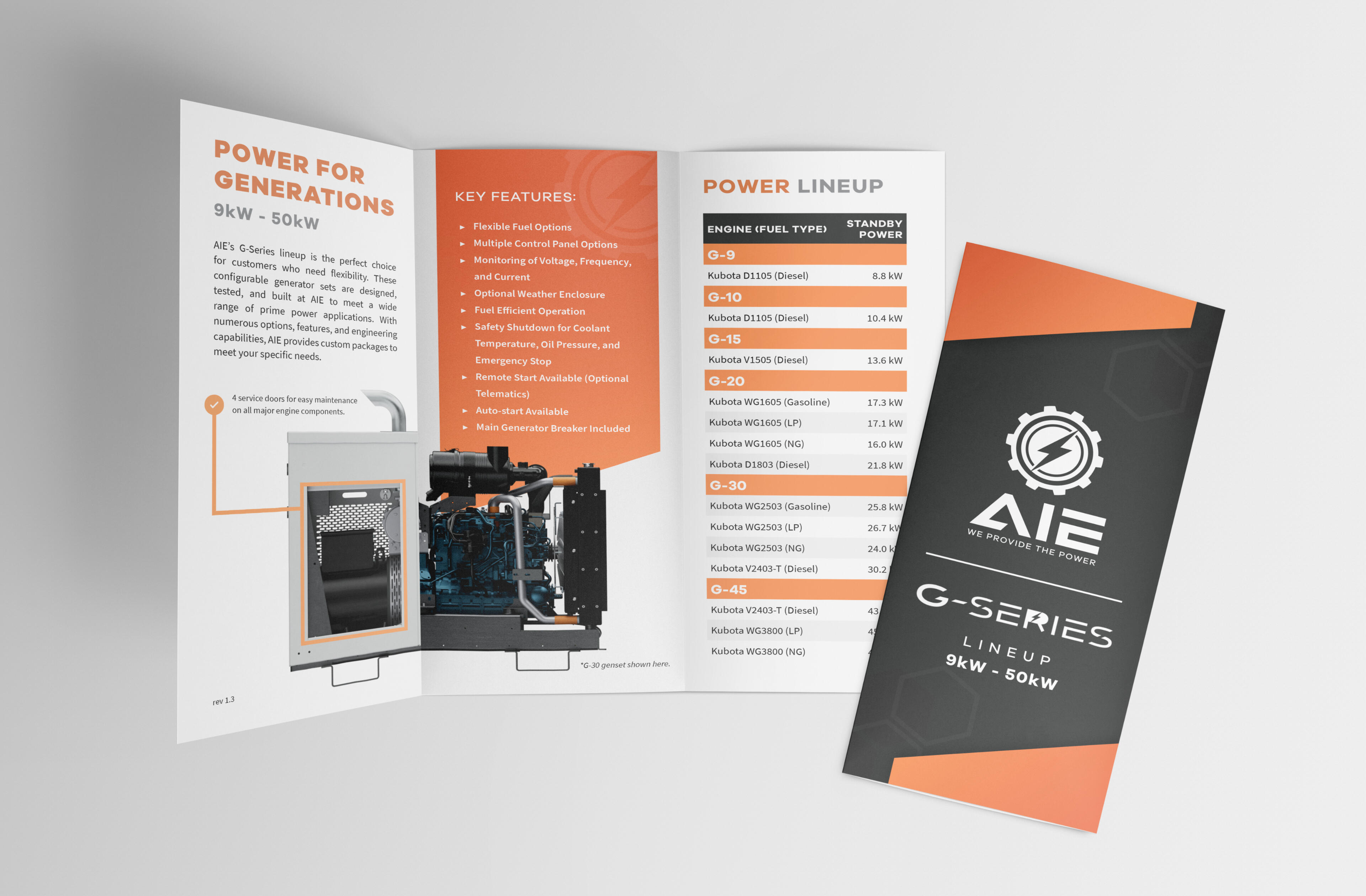 AIE is an industrial engine distributor that engineers and builds their own custom power products. I have worked with them over the majority of my tenure as a professional designer, designing logos, creating motion graphics, and developing their brand identity for various power product lineups.These cohesive sub-brands draw inspiration from their "parent" brand. They communicate futurism and AIE's mission to push modern power product solutions into the future.
