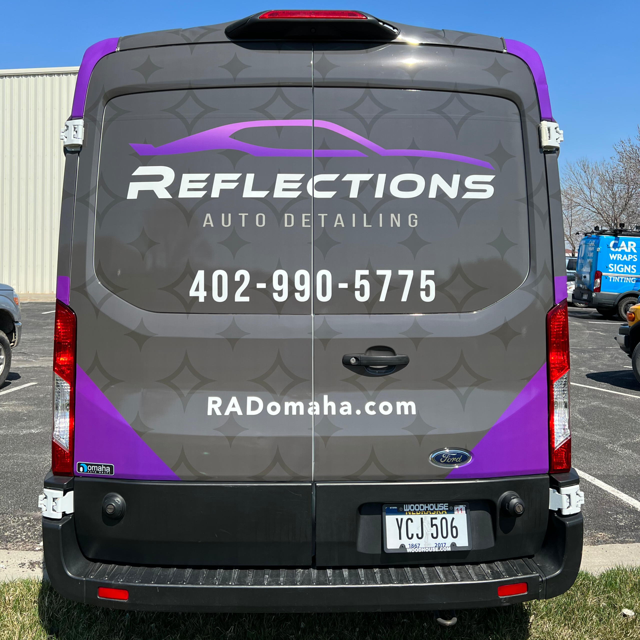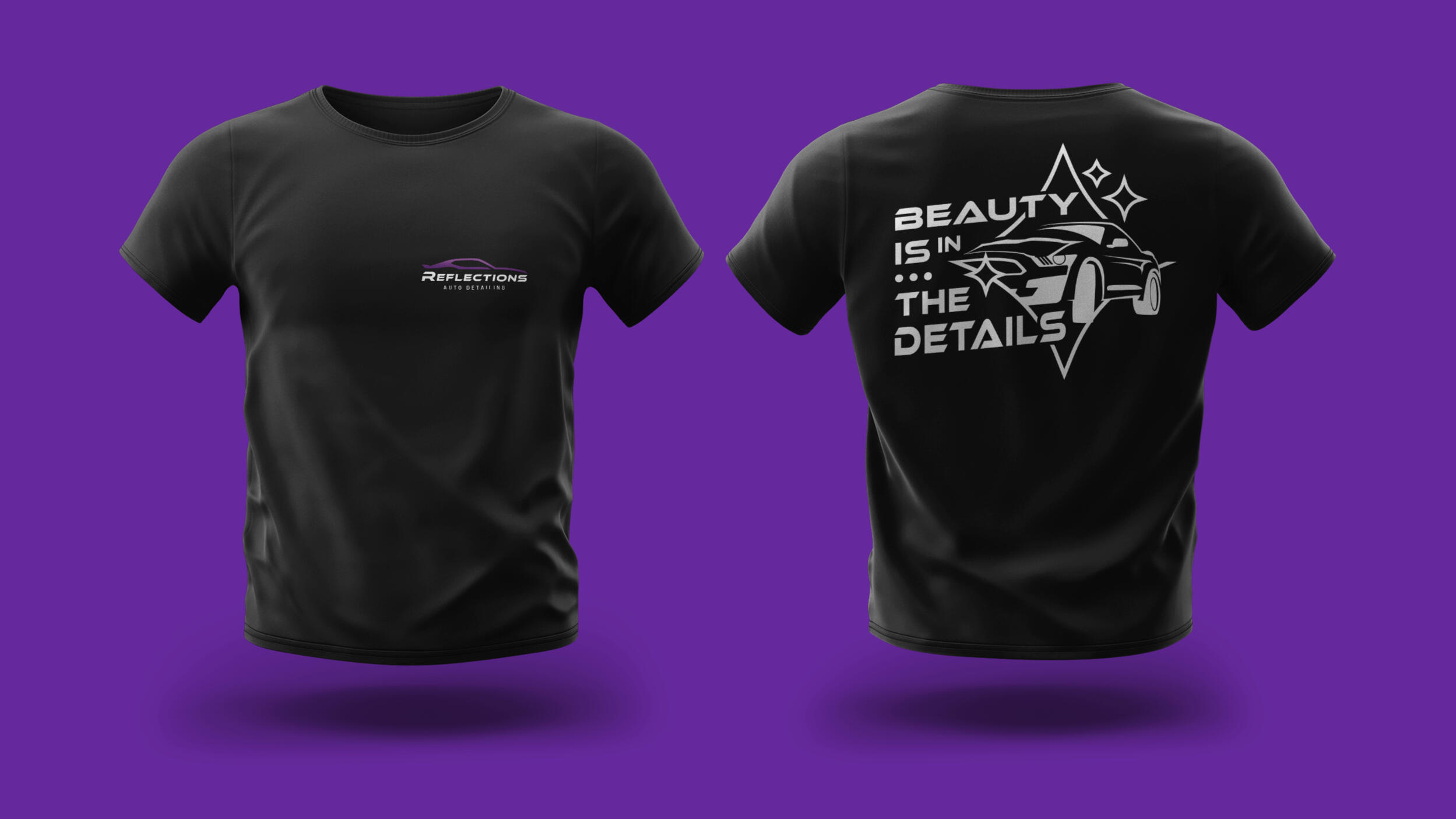 Reflections Auto Detailing required a logo that communicated a luxury service. Being a mobile service without an actual brick and mortar location, their van wrap was everything.The first step was to create a logo that could convey a luxury service of convenience and cleanliness. Once we had narrowed it down, next came the van wrap: Eye-catching, legible, and easy to determine the services provided.Finally, the client wanted to sell some custom apparel with varying styles of "rad" (the companies' acronym) graphics.